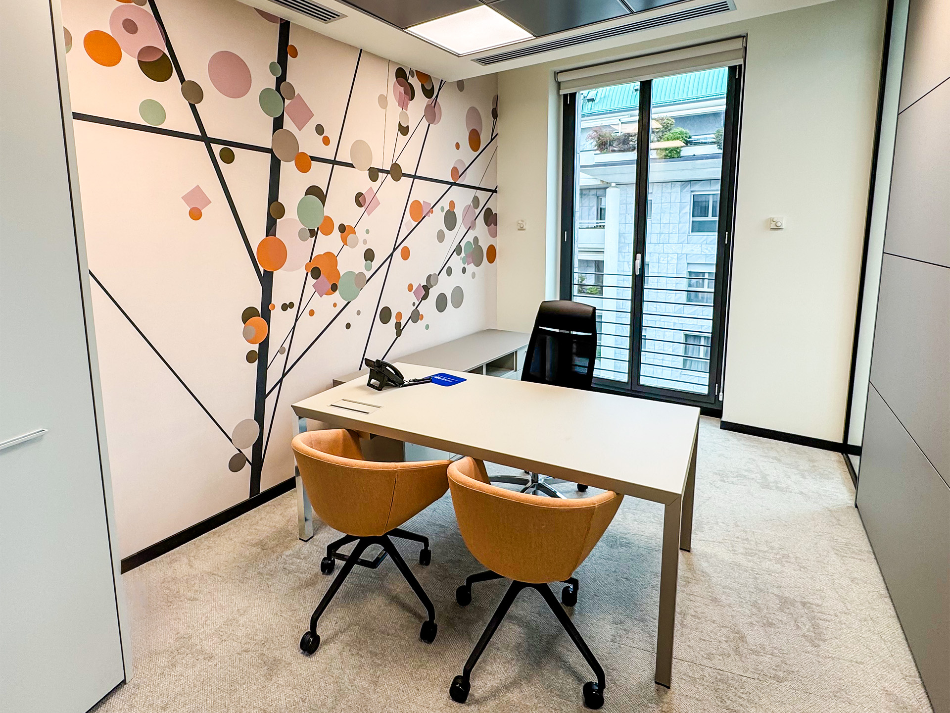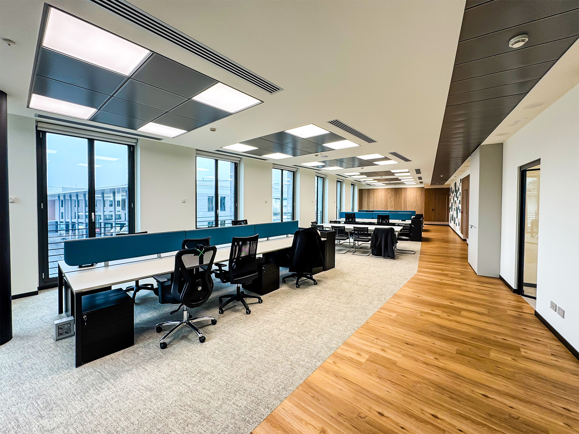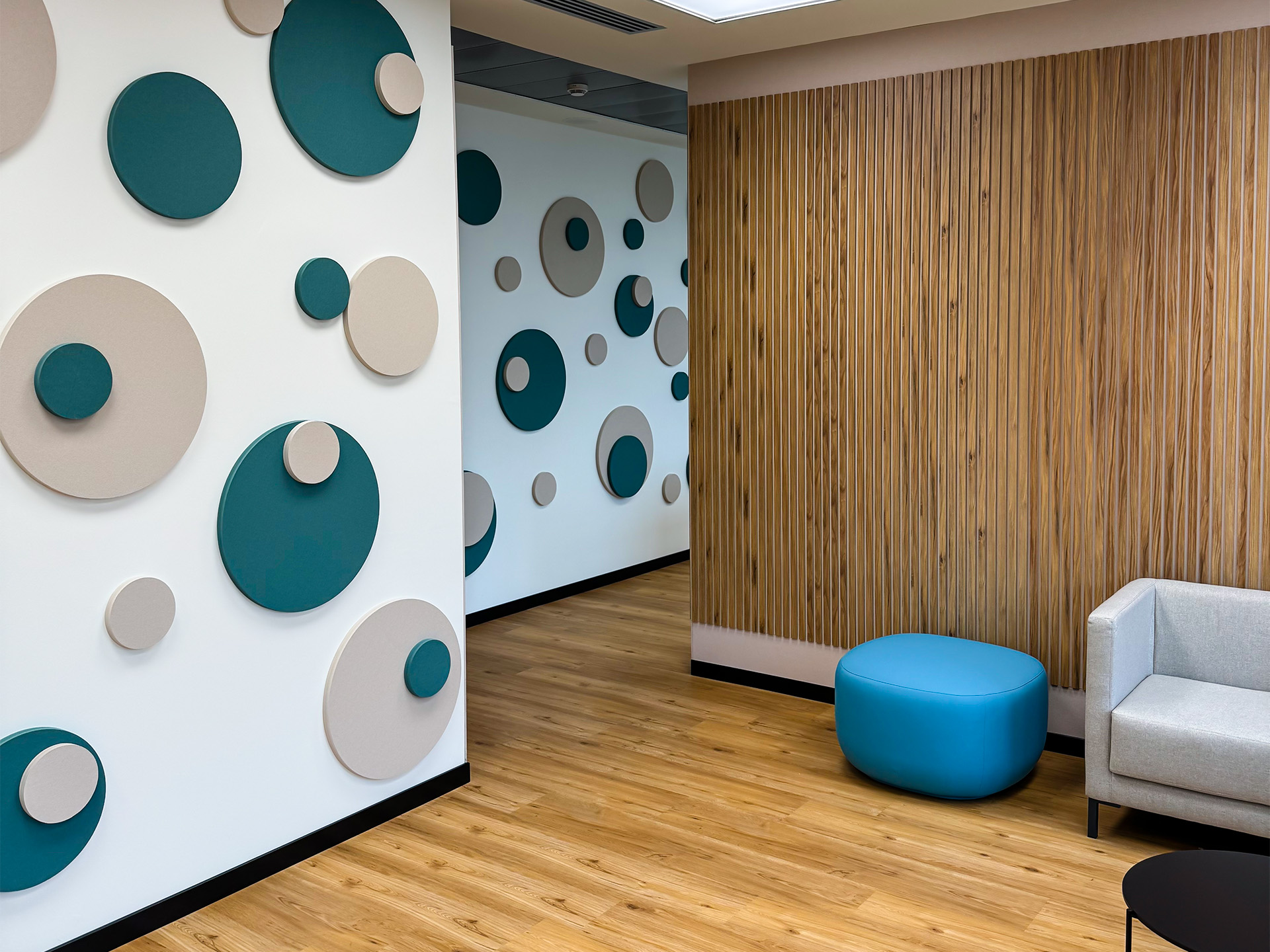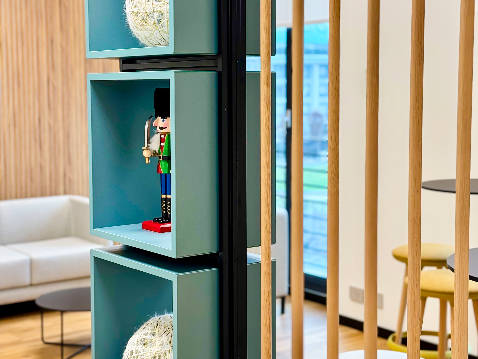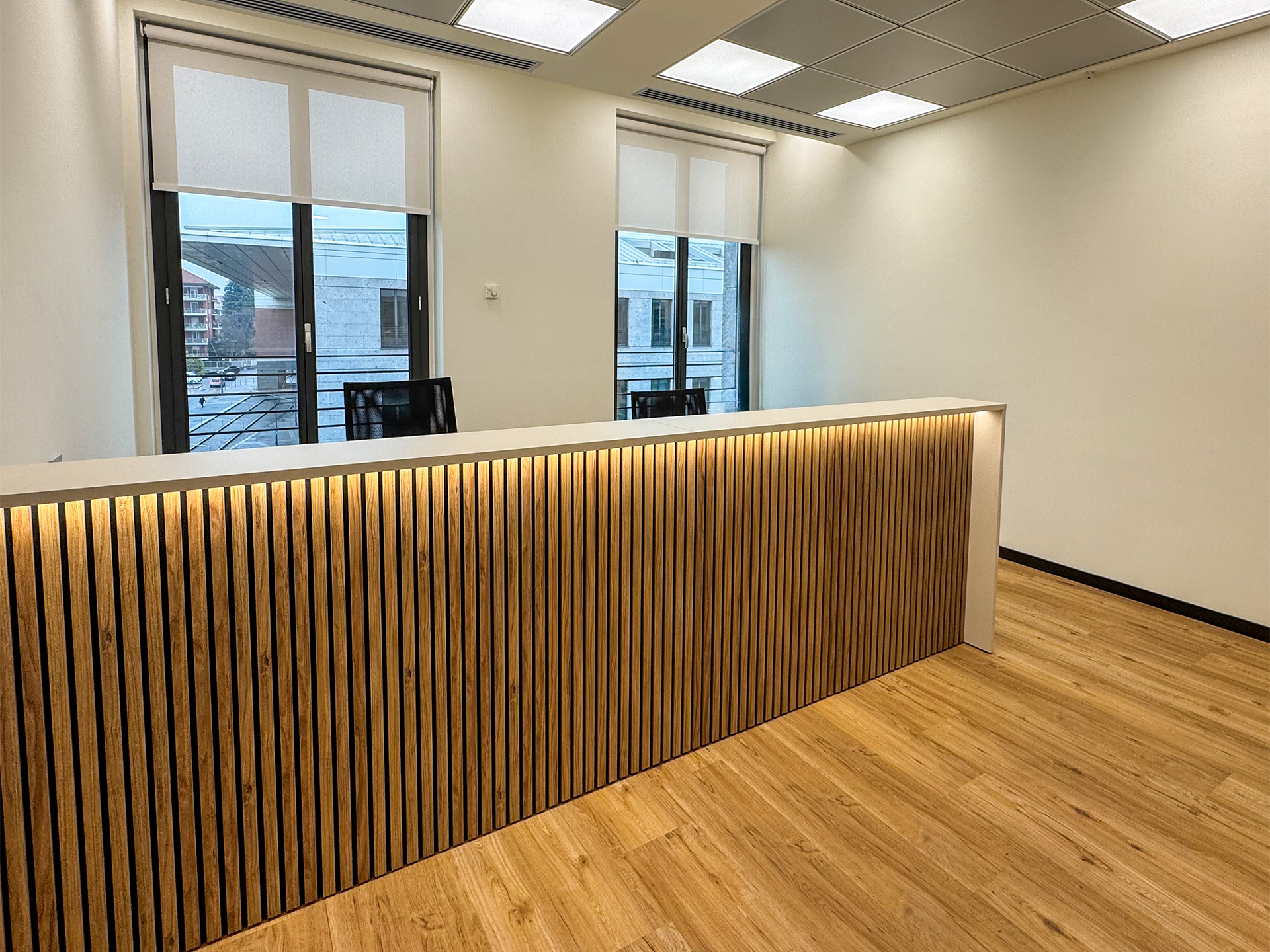 Arredoufficio ha sviluppato e gestito tutte le fasi del progetto e del cantiere: ristrutturazione, tinteggiatura, pavimentazione, pareti, rivestimenti e illuminotecnica. Grande attenzione è stata riservata al comfort acustico, con un allestimento di fonoassorbenza completamente custom che si integra perfettamente con gli spazi, migliorando benessere, concentrazione e privacy.
