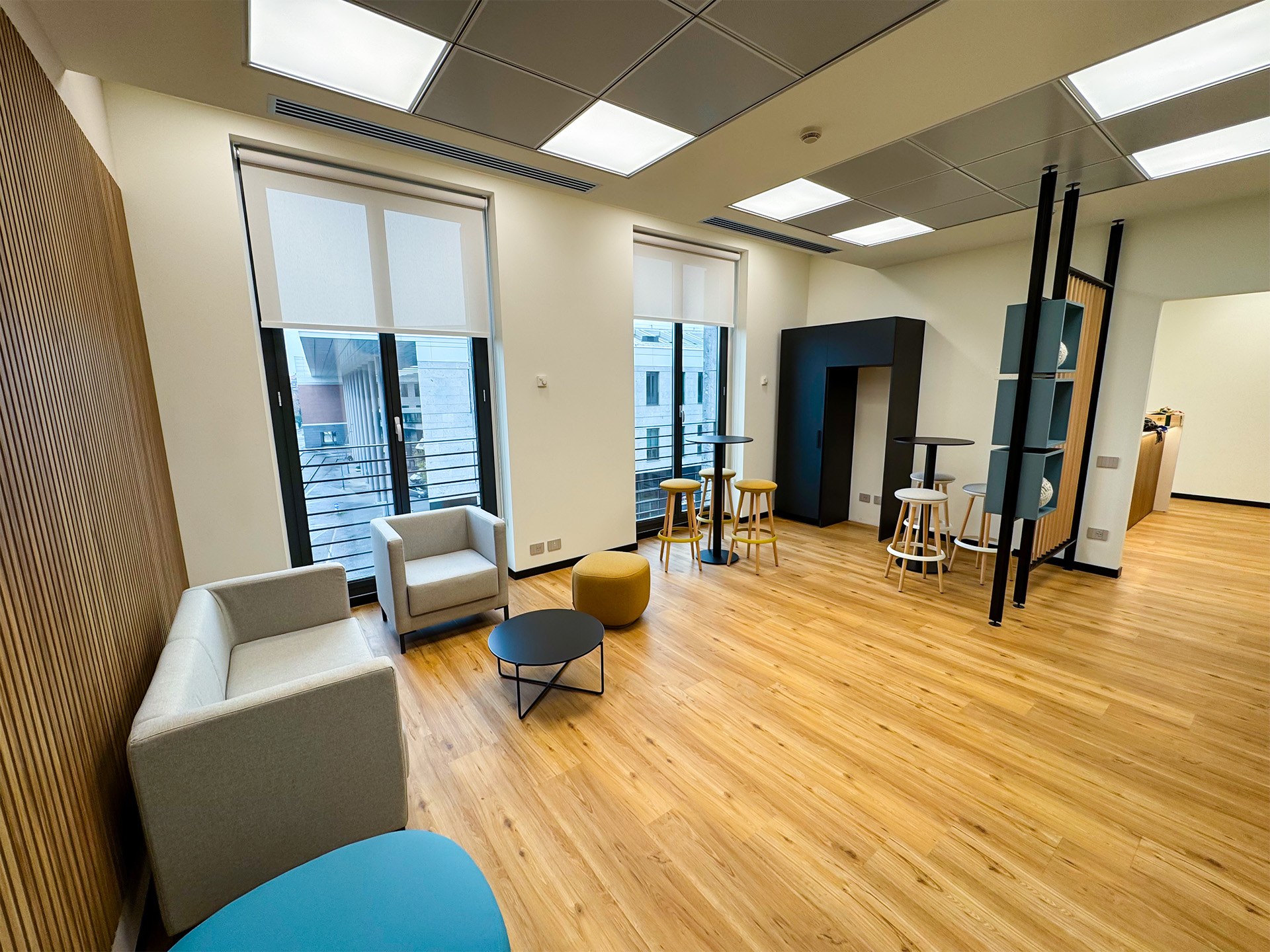 Il cliente, attivo nel settore della gestione condominiale, necessitava di ristrutturare i propri spazi di lavoro orientandoli al comfort e al benessere. In questo contesto, l’obiettivo era anche unificare due uffici precedentemente separati in un unico ambiente moderno e condiviso.